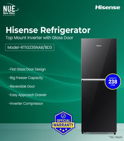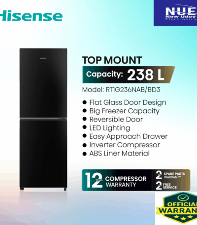 Hisense RT1G236NAB/BD3 238 liter official refrigerator price in Bangladesh.
