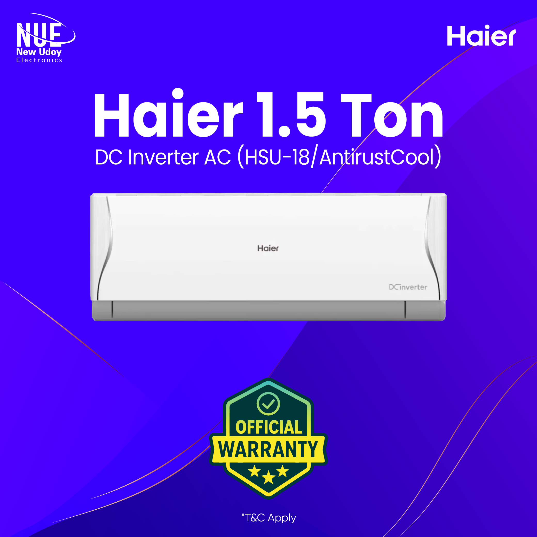 Haier 1.5 Ton Antirustcool DC Inverter AC (HSU-18AntirustCool) Official Warranty