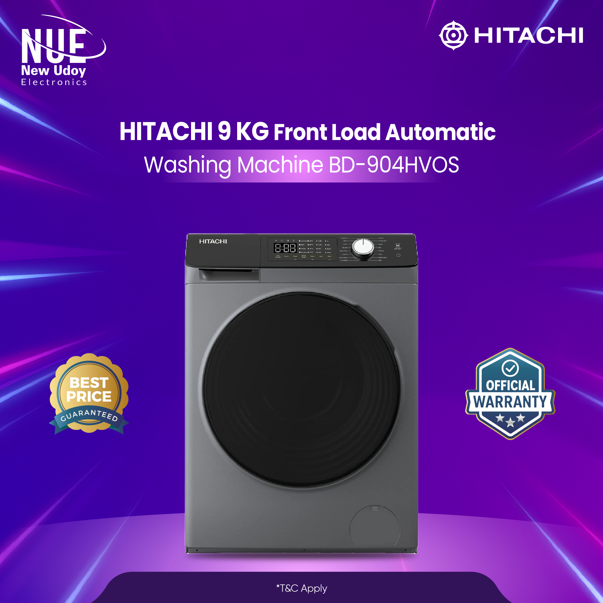 The Hitachi 9 KG Front Load Automatic Washing Machine (BD-904HVOS) delivers powerful yet gentle cleaning with advanced wash programs, low water usage, and long-lasting performance—ideal for modern families.