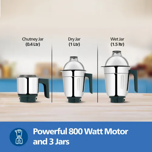 3 Stainless Steel Jars (Wet, Dry, Chutney Grinding)