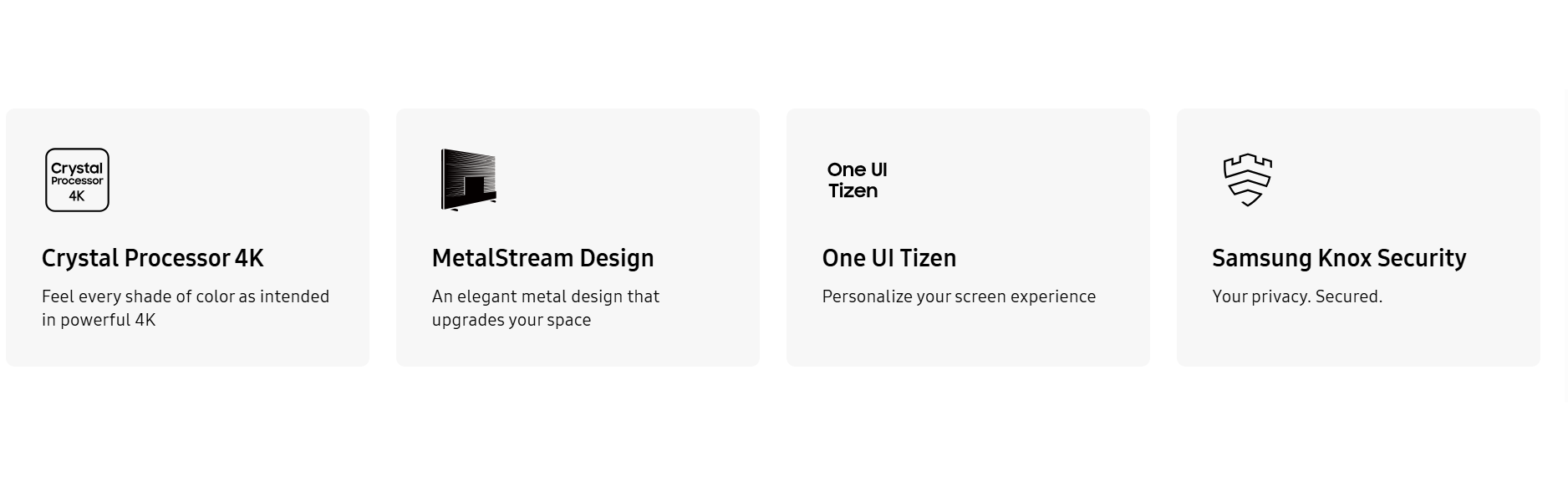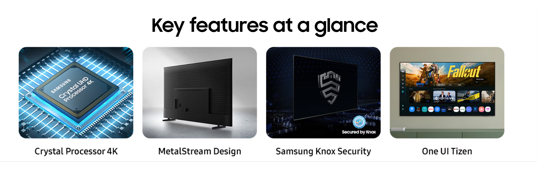 • ✅ Processor: Crystal 4K Processor with AI upscaling